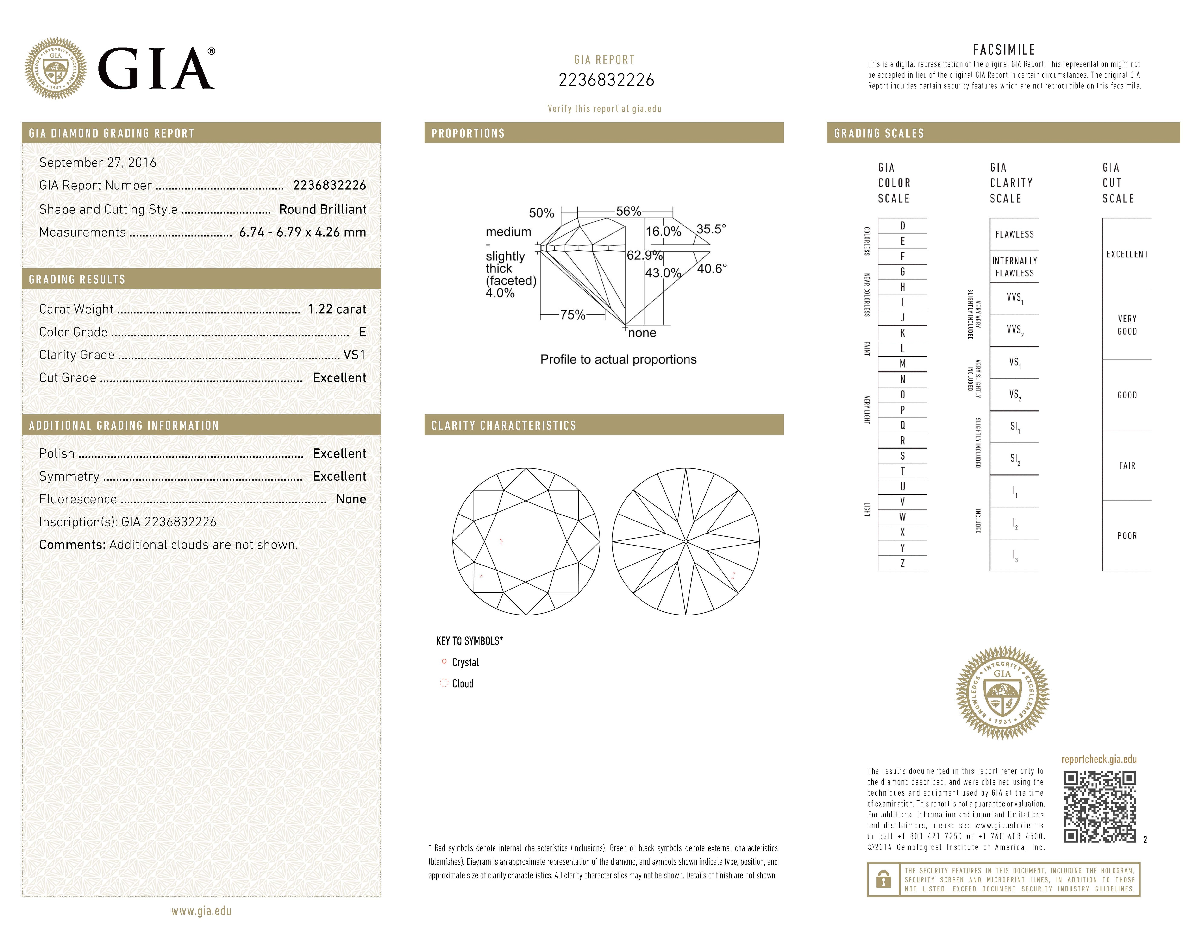 Gemological Institute of America (下簡稱GIA) 是現時最受公認鑽石驗證機構, 為了方便交易及計價, 現今市場大多數天然鑽石都會經GIA評級, 以下是GIA證書解說