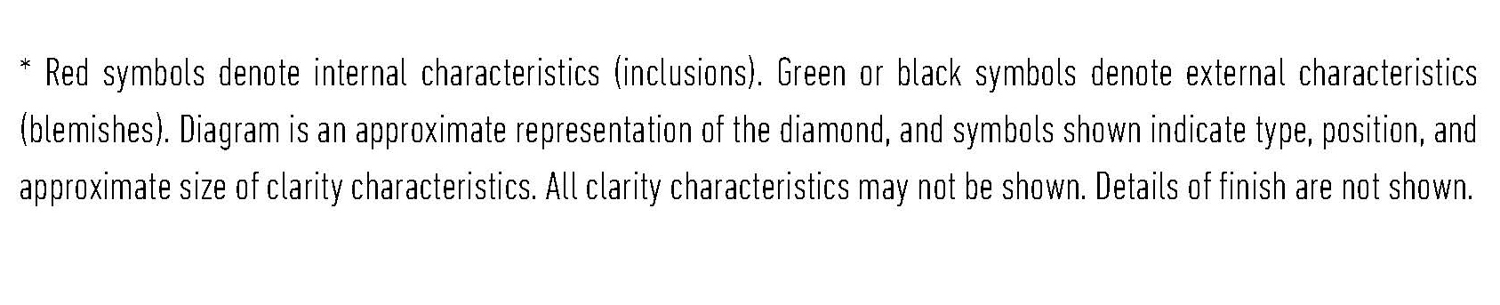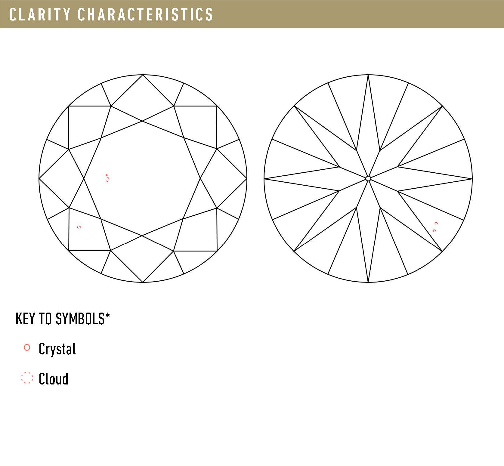 Clarity Characteristics 顯示鑽石內含物位置, 大少及種類, 您可以依圖中內含物位置查看鑽石淨度, 但淨度圖不會顯示內含物的顏色及倒影。