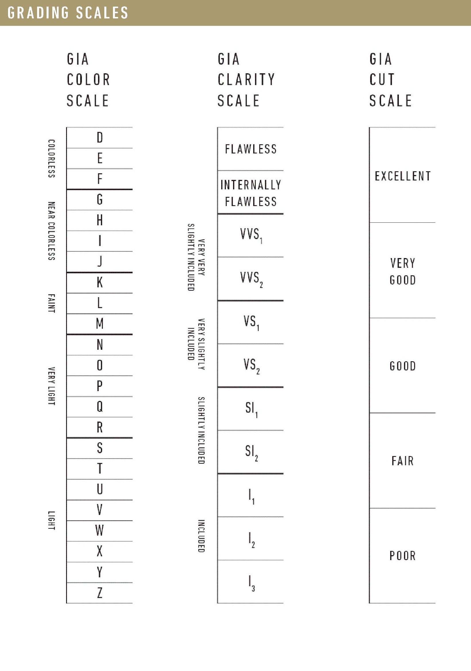 GIA Chart 圖左顏色級別, 圖中淨度級別及圖右車工級別